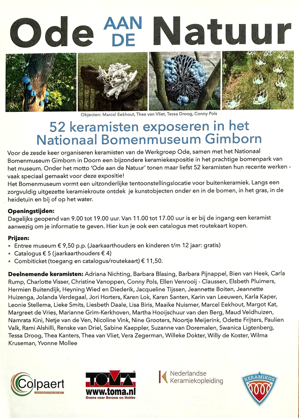 Haar werk is van 11 april t/m 07 juni 2026 te zien en te koop in het Nationaal Bomenmuseum in Doorn,